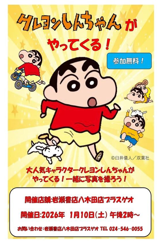 2026 1 11 日クレヨンしんちゃんがやってくる!(岩瀬書店鎌田店)