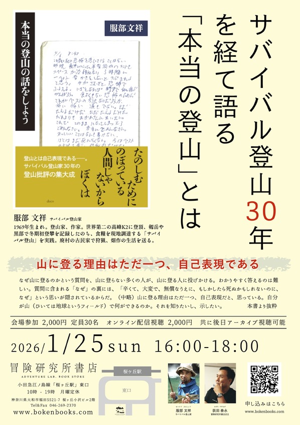 2026 1 25 日服部文祥「本当の登山の話をしよう」出版記念トークイベント